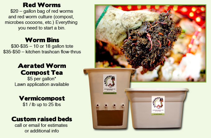 **worms will include mature adults (breeders), teenagers (feeders), babies and cocoons along with several pounds of worm compost.